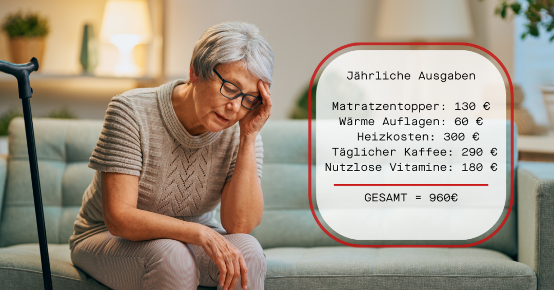 Zusammengerechnet gab ich fast 700 bis 1.000 Euro pro Jahr meiner Pension aus, nur um mit Gelenkschmerzen und Erschöpfung umzugehen.