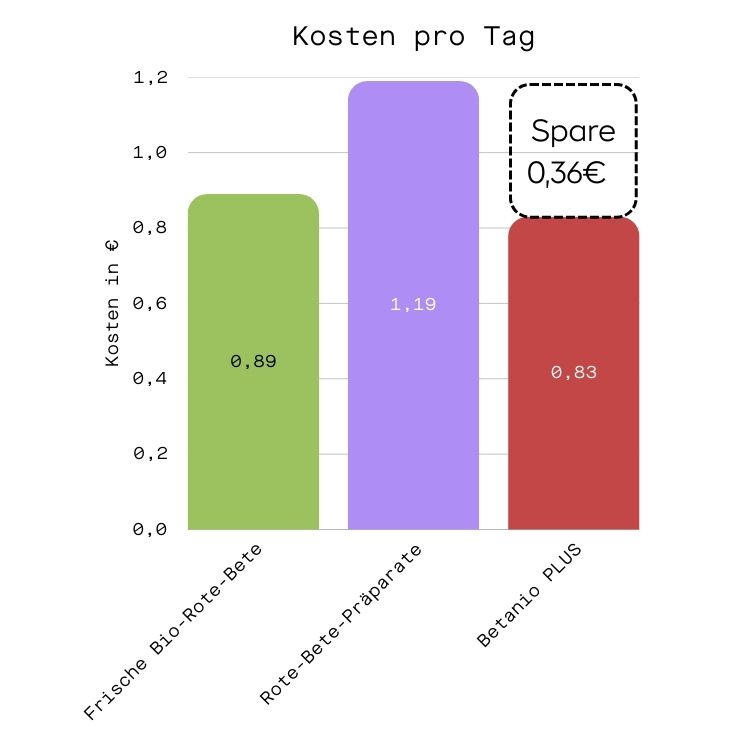 Man bekommt also nicht nur das wirksamste erhältliche Rote-Bete-Präparat – sondern zahlt auch noch weniger dafür als für jede der Alternativen.