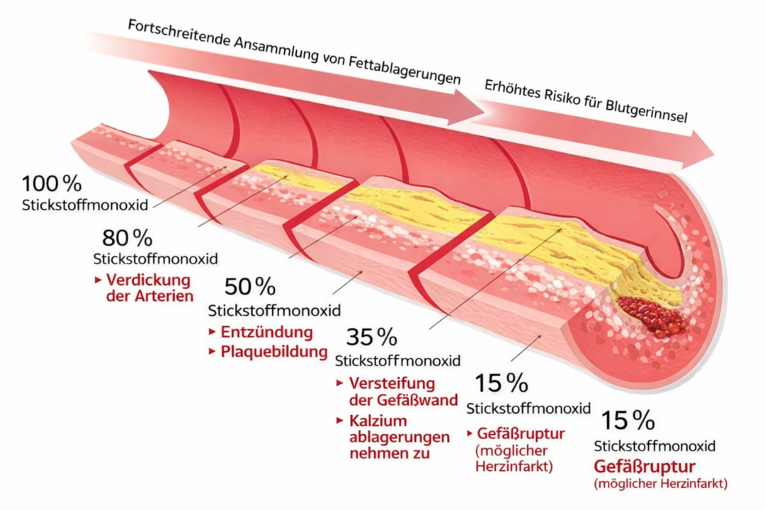 Mit zunehmendem Alter hört der Körper auf, ausreichend Stickstoffmonoxid zu produzieren – ein winziges Molekül, das Ihre Blutgefäße entspannt und offen hält.